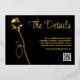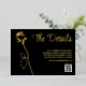 Black and Gold Rose bud Real foil gold Elegant floral Wedding Details card with black and white QR code