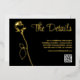 Roses have long been associated with love and romance, and this elegant invitation beautifully showcases a delicate rose bud in captivating black and gold hues.
