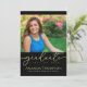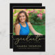 Celebrate your achievement with this graduation photo card featuring a graduate photo template and gold calligraphy script for a timeless touch. The black and gold design adds a bold yet elegant typography style, perfect for announcing your class of milestones. Whether for high school or college, this simple, minimalist, and stylish trendy card beautifully showcases your senior pictures. Personalise yours today for a sophisticated graduation announcement!