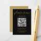 A simple, elegant black and gold script RSVP enclosure card featuring your own QR code and wedding website details set in chic typography. Designed by Thisisnotme©