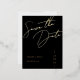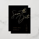 Black and Gold Script Wedding Save the Date Gold Foil Invitation Postcard