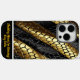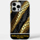 A collection of snake skins elegantly laid out, showcasing intricate textures and shimmering patterns in a captivating black and gold colour scheme. The unique arrangement emphasizes the natural beauty of the scales, revealing a striking interplay of light and shadow. MONOGRAM ADD YOUR NAME