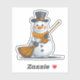 A snowman wearing a black and gold top hat, gold scarf, black gloves, and 3 coal buttons holds a broom. This fun art is great all winter long.