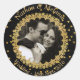 Elegant black and gold favour stickers to personalise with your own photograph and text, perfect to celebrate special occasions like Weddings and Engagements. An ornate gold coloured frame surrounds your photograph set off against a black background with gold coloured flecks. Looks stunning with black and white photographs.