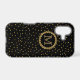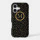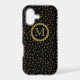 Elegant black and gold personalized phone cases. An ornate gold colored frame surrounds your initial set off against a black background with gold colored flecks.