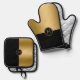 Black and gold split-screen geometric design oven mitt & pot holder set