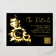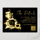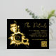 Black and Gold Sunflower Real foil gold Elegant floral Wedding Details card with real gold foil QR code