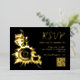 Black and Gold Sunflower Real foil gold Elegant floral Wedding RSVP with real gold foil QR code