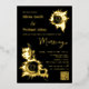 Black and Gold Sunflower Real foil gold Elegant floral Wedding Invitation with real gold foil QR code