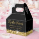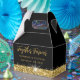 Elegant black and Gold Glitter "Together Forever" Wedding, bridal shower, or anniversary Party Favour Box with custom personalised names and wedding or anniversary date printed on the mini gable box.