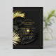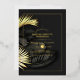 Black and gold tropical leaves bachelorette weekend invitation with itinerary. Please note that only the text and the frame are actual foil and not the leaves.