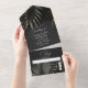 Black and Gold Tropical Beach Wedding All In One I Invitation
