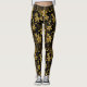 Lush tropical leaves and flowers seamless pattern in gold on the black background.