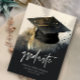 Black and Gold Watercolor Graduate Cap Graduation Announcement