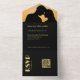 Elevate your wedding experience with our Modern Black and Gold Wedding Invitation, a perfect fusion of style and convenience. This invitation showcases a contemporary font, gleaming wedding rings that symbolise your everlasting love, your favourite photo, and even includes a convenient QR code for online RSVP's, eliminating the need for separate response cards. Crafted with premium-quality cardstock and a sleek design, it exudes luxury. Plus, it's fully customisable, allowing you to infuse your unique details and personality effortlessly. Sending it out is a breeze, thanks to its simple assembly and mailing process. Start making your wedding memorable from the very beginning. Explore our Black & Gold Themed Wedding Collection today!