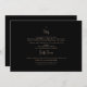 Wedding Details Enclosure Card. Two hotels. Shuttle. Cocktails. Wedding Site. Black Background. Gold text.