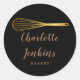 Black And Gold Whisk Bakery Patisserie Script Classic Round Sticker