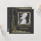 Black stripes and gold floral border birthday invitation. An elegant, feminine, classic square birthday invitation, featuring a golden floral border from top to bottom and your photo in a golden frame. Perfect for a 20, 30, 40, 50, 60, 70, 80 and why not 100th birthday. Personalise it with your text.