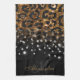 Black and Golden Sparkle Leopard Print Tea Towel