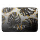 Black and Golden Tropical Leaves Bath Mat