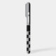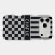 Customize this iPhone 17 pro max case with black and gray stripes on the top half and black and gray checkered pattern on the bottom half with your name in a modern CAP font in the middle in gray on black. It's preppy, trendy and bold - definitely cool!