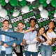 Green and Black on White Repeating Tapestry Backdrop. Use the "personalise" option to change to any class year.