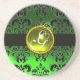 BLACK AND GREEN DAMASK Yellow Topaz Monogram Coaster