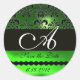 BLACK AND GREEN EMERALD DAMASK MONOGRAM, CLASSIC ROUND STICKER