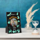 Black and green Birthday party welcome plaque with illustrated Halloween motifs. You can customise it with your baby's favourite photo and you can modify all the text that comes out.