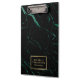 Your name or business name is elegantly displayed over a velvety black and green marble background for a very unique and luxurious aesthetic on this personalised clipboard. The organic marble pattern is recreated in unconventional colours to bring intrigue and mystery to the design. A stylish creation created by 1201AM © 1201AM Design Studio | www.1201am.com