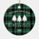 Black and Green Plaid with Monogram Name Photo Ceramic Ornament