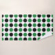 Abstract art of black and green polka dots against a white background.