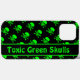 Black phone case with a green skull and crossbones pattern. Editable text field for easy customisation with your name or message.