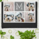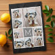 Black and Grey 8 Photo Collage classic monogram Tea Towel