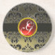 BLACK AND GREY DAMASK Red Ruby Monogram Coaster