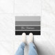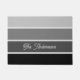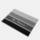 This trendy doormat features four stripes in varying ombre gradients of black, charcoal, and grey, and your name or monogram in script typography for a modern look.