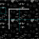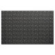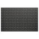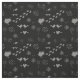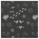 black and grey pattern of birds, dots, footsteps, flowers, and hearts