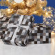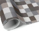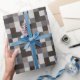 This wrapping paper features squares in different shades of black and grey in a pixelated pattern.