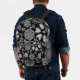 Backpack all over print cut sew style storage bag printed with Black And Grey Retro Floral Art Seamless Pattern original hand drawn graphic design artwork illustration by TheFabricSeal print on demand shop at Zazzle.com #ZazzleMade ©️Original. https://www.zazzle.com/store/thefabricseal