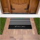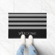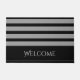 Designed with alternating black and grey stripes. "Welcome" or choice of text is displayed in grey font on the lower edge over a solid black background.