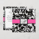 Hot Pink & Black Damask Monogram Wedding RSVP Cards - For Buffet Style Receptions