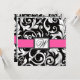 Hot Pink & Black Damask Monogram Wedding Reception Cards - (for providing wedding reception location & details to your guests)