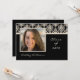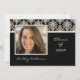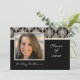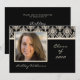 Graduation party invitations with an elegant ivory and black damask background to frame your photo. Enter name and year on the front, and celebration details on the back.