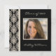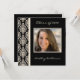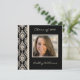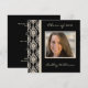 Graduation party invitations with an elegant ivory and black damask background to frame your photo. Enter name and year on the front, and celebration details on the back.