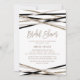 This black and ivory streamers bridal shower invitation card is perfect for a modern bridal shower. The elegant and neutral design features criss crossing lines in cream, black and champagne gold glitter for a geometric look.