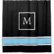 Black and Light Blue Monogram with Stripes Shower Curtain