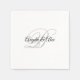 Wedding napkins with a minimalist couple's monogram in a fancy calligraphy script in light grey and black on a white background.