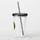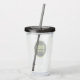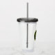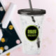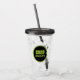Modern, acrylic tumbler with lid and drinking straw for the high school or college graduate with school colours black and lime green, with class year printed in lime green on a black circle with lime green border.
