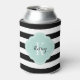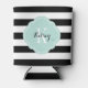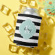 Black and Mint Preppy Stripes Monogram Can Cooler