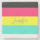 Black and Neon Colour Block Stripe Monogram Name Stone Coaster
